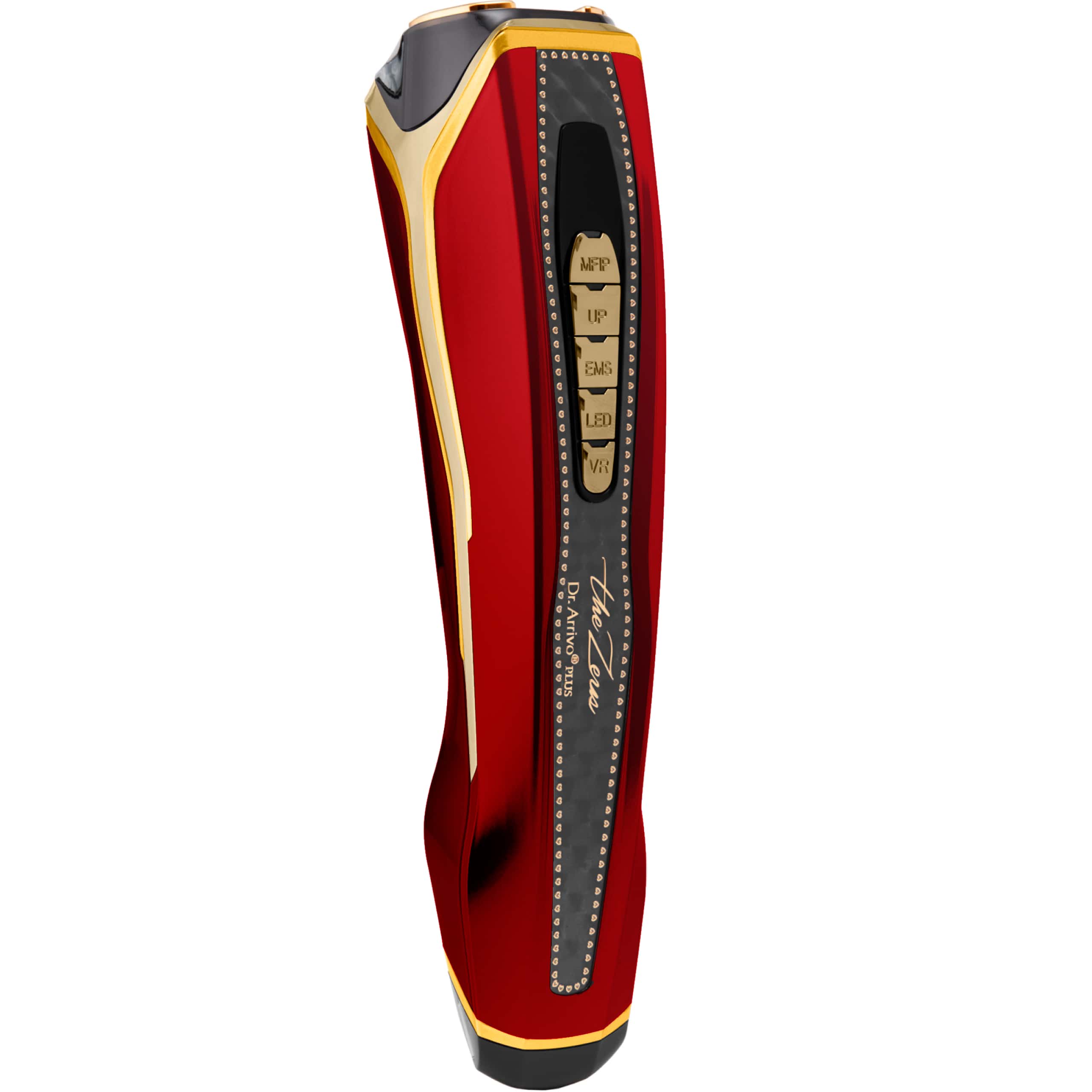Dr. Arrivo The Zeus Plus — премиальный Японский косметологический аппарат для домашнего применения. The Zeus активно работает со скульптурированием и симметризацией лица. Рабочие пластины модели Plus покрыты 24к золотом, что способствует лучшей проводимости радиоволновой энергии и подходит пациентам с чувствительной кожей.