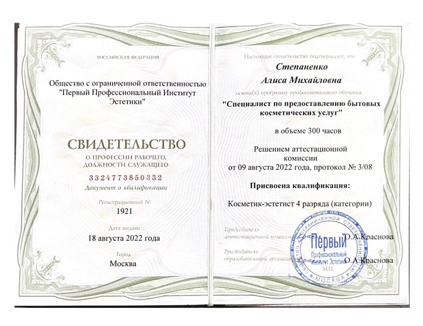 Косметолог-эстетист, специалист по массажу лица и аппаратным методикам в косметологии, тренер компании Artistic&Co.