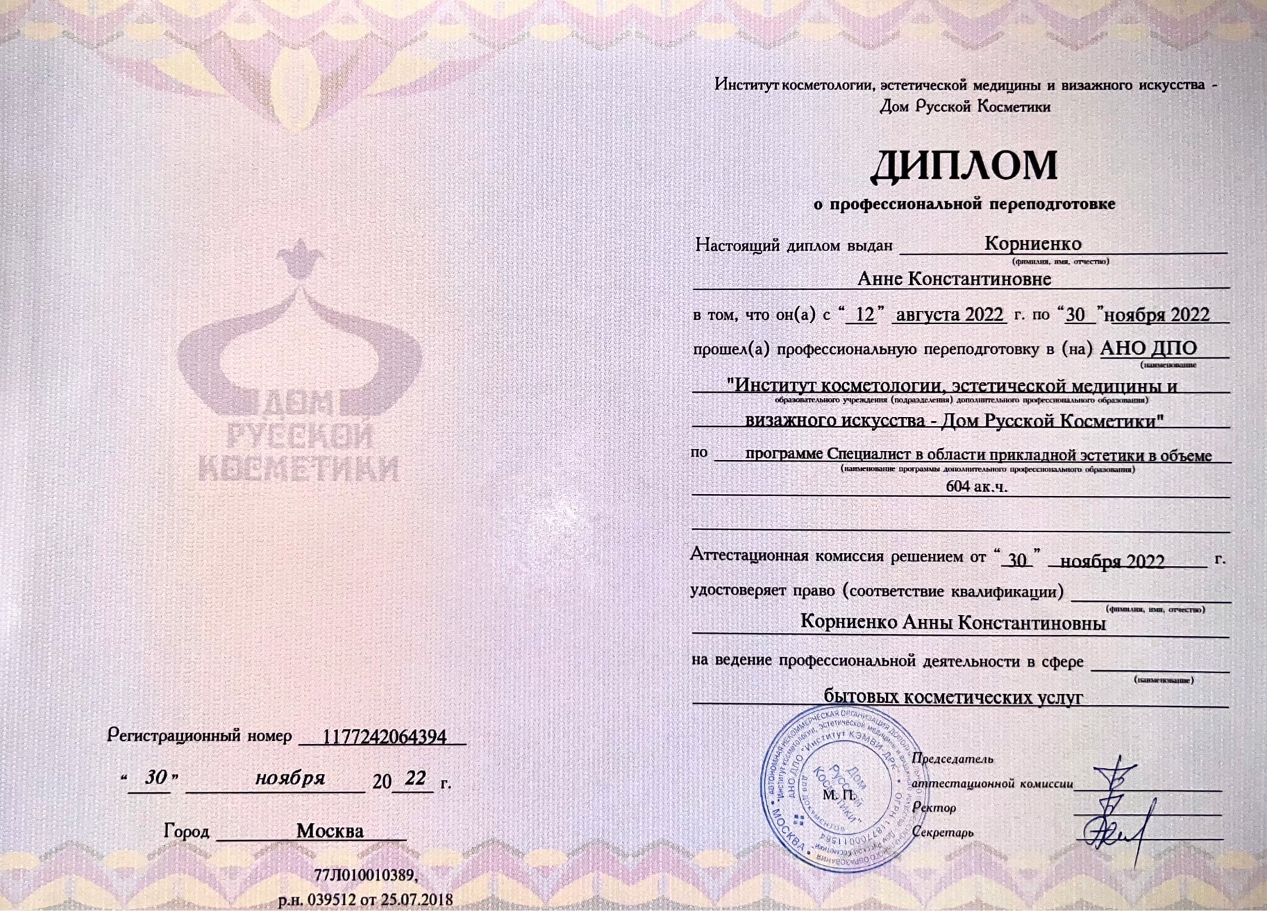 Врач-Дерматолог, косметолог, участник международных конференций и семинаров.
